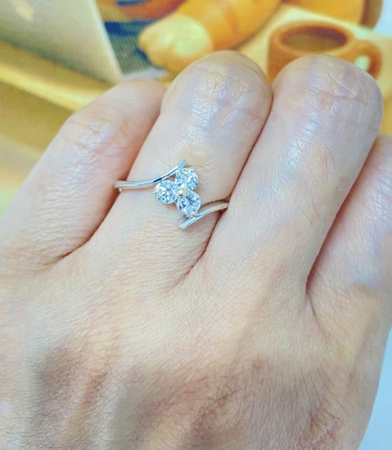 **เคาะเดียววัดใจ** แหวนเพชรเหมือนใส่เพชร 1กะรัตเลยค่ะ แหวนเพชรแท้3เม็ด น้ำหนักรวม 0.39 ตัง White Goldทองคำขาว58% แหวนเบอร์52 (16.6mm) พร้อมบัตรรับรองG-Phet |
