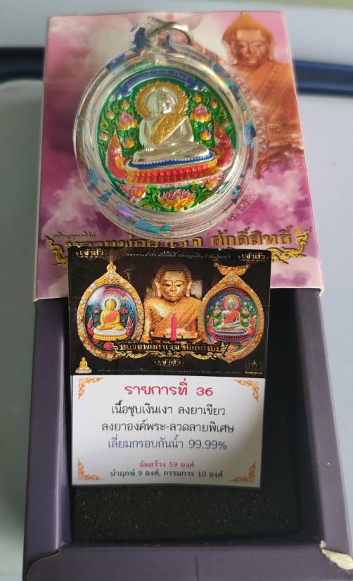 เหรียญพุทธศิลป์ หลวงพ่อสำเร็จศักดิ์สิทธิ์รุ่น"เจ้าสัวยุค๙" บ้านหนองตาโล่ จ.สระบุรี เนื้อชุบเงินเงา ลงยาเขียว ลงยาองค์พระ-ลวดลายพิเศษ เลี่ยมกรอบกันน้ำ หมายเลข ๓๘ พร้อมกล่อง เลขสวย เลขปีเกิด ของท่านใดน่าหาบูชาเสริมโชคเสริมดวง ค้าขายร่ำรวย |