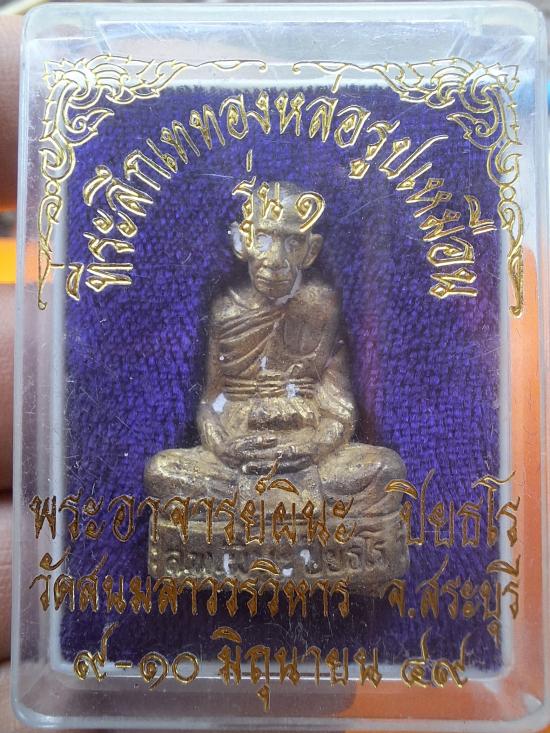 ...รูปหล่อลอยองค์ หลวงพ่อผินะ รุ่นแรก วัดสนมลาว จ.สระบุรี เนื้อทองผสม จัดสร้างเพื่อเป็นที่ระลึกในงานเททองหล่อรูปเหมือน หลวงพ่อผินะ เมื่อปี 2549 ก้นอุดผงเก่าและเม็ดกริ่งกันฟ้าผ่า ที่หลวงพ่อท่านปลุกเสกไ |