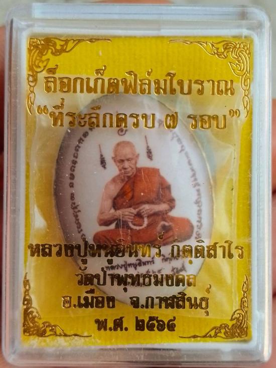ล็อกเก็ตฟิล์มโบราณ ที่ระลึกครบ 7 รอบ หลวงปู่หนูอินทร์ วัดป่าพุทธมงคล จังหวัดกาฬสินธุ์ ปี 2564 ตอกนัมเบอร์ 73 พร้อมกล่องเดิมสภาพสวย