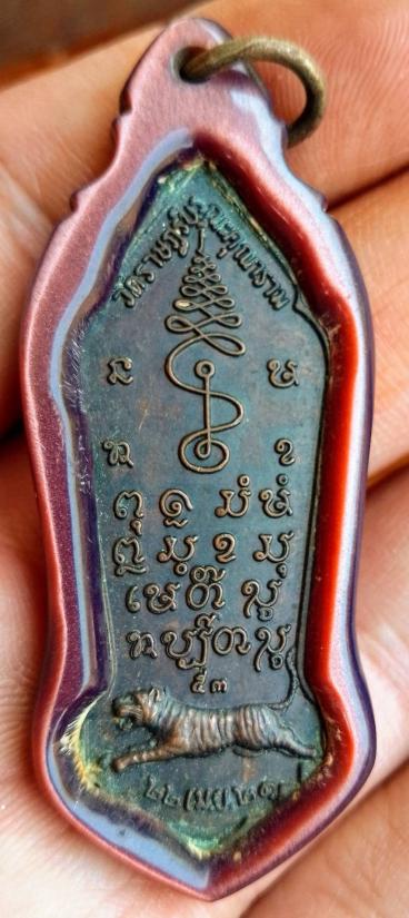 เคาะเดียวแดง.....เหรียญหลวงพ่อสมชาย วัดเขาสุกิม พิมพ์ยืน รุ่นโรตารี่ เนื้อทองแดงรมดำ ปี21 |