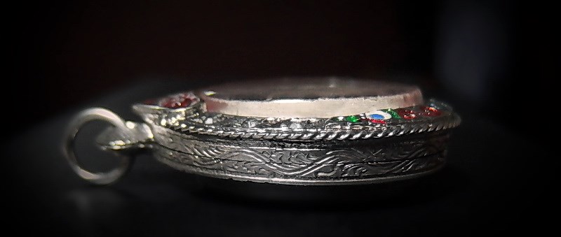 ตลับเงินผสมมือ1ใส่เหรียญรูปไข่(แถมพระ)ขนาดตามภาพถ่ายเคาะเดียวครับ