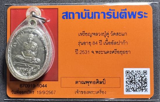 เหรียญหลวงปู่ดู่ วัดสะแก รุ่นอายุ 84 ปี เนื้ออัลปาก้า ปี 2531 จ.พระนครศรีอยุธยา