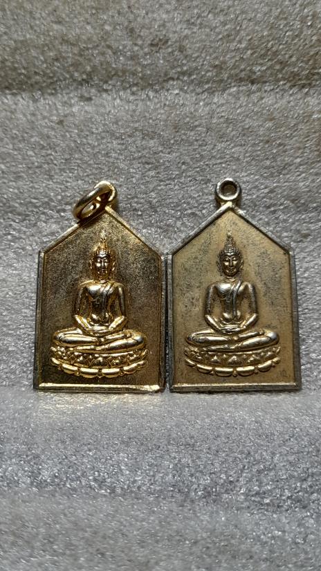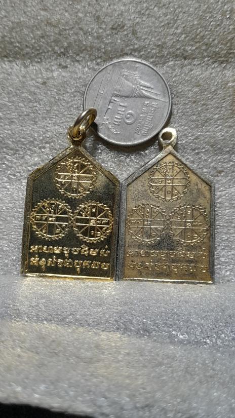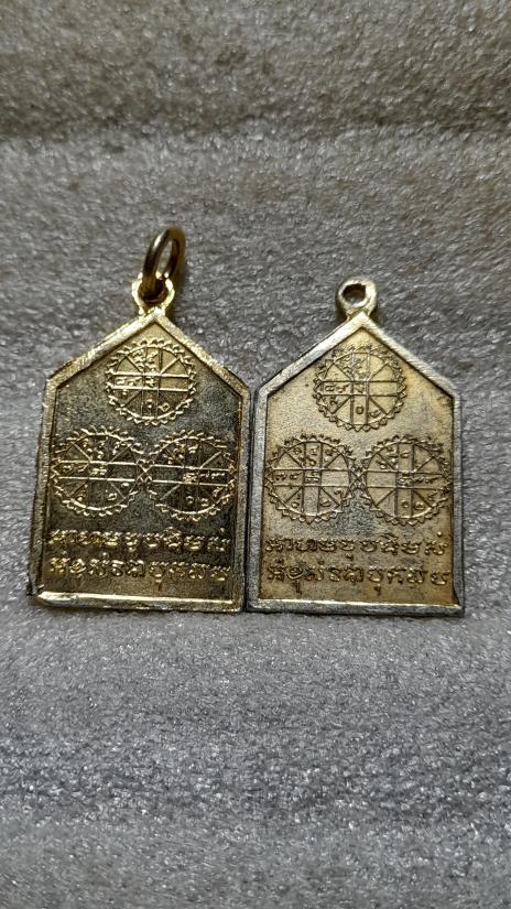 วัดใจเคาะเดียว.........100.......เหรียญพระพุทธ ห้าเหลี่ยม หลังยันต์ดวง กะไหล่ทอง รวม 2 เหรียญ ไม่ทราบที่ |