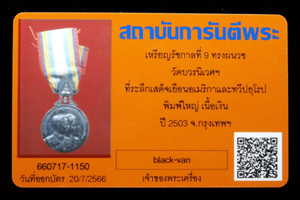 เหรียญแพรแถบ ที่ระลึกในหลวง เสด็จเยือนยุโรป พิมพ์ใหญ่ ปี 2503 เนื้อเงิน บล็อกนิยมวงเดือน พร้อมบัตรรับรอง G-pra ครับ |