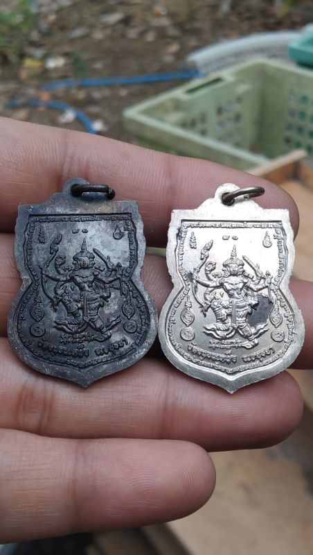 เหรียญดีกรุงเก่า เหรียญเสมารูปเหมือน หลังพระนารายณ์ออกศึก รุ่นแรก เนื้ออัลปาก้า และเนื้อทองแดงรมดำ จัดสร้างขึ้นในปี 2543 พระอาจารย์สาท วัดขนอนเหนือ