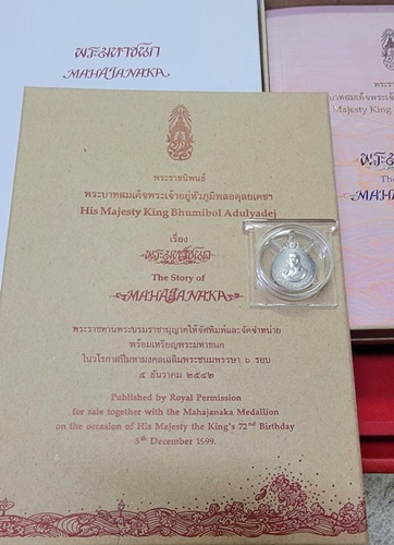 เหรียญพระมหาชนก เนื้อเงิน พิมพ์เล็ก ปี 2542 พร้อมหนังสือกล่องนอก,ในครบ สภาพสวยใหม่