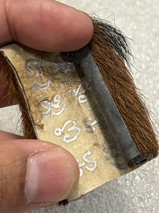 ตะกรุดตะกั่ว พันหนังเสือ มีจารย์ ไม่ทราบที่