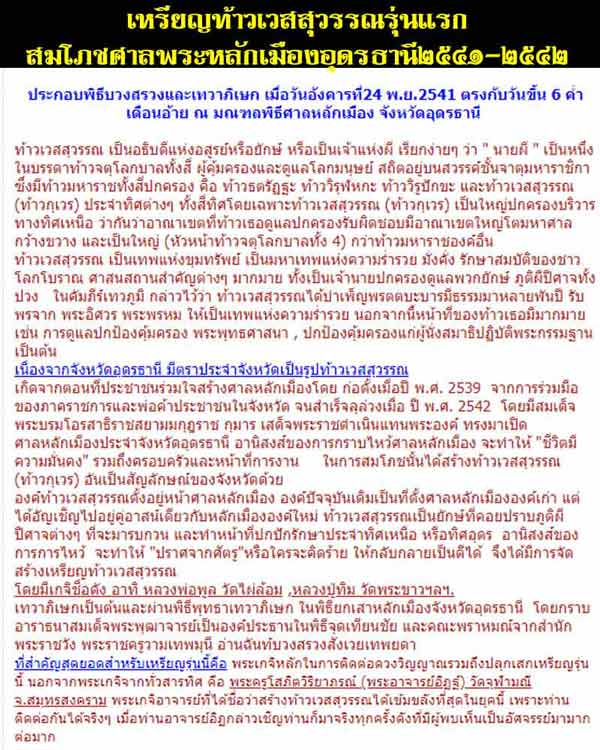 เหรียญท้าวเวสสุวรรณสมโภชศาลหลักเมืองจังหวัดอุดรธานี ปี2542 เนื้อสามกษัตริย์ กล่องเดิม |