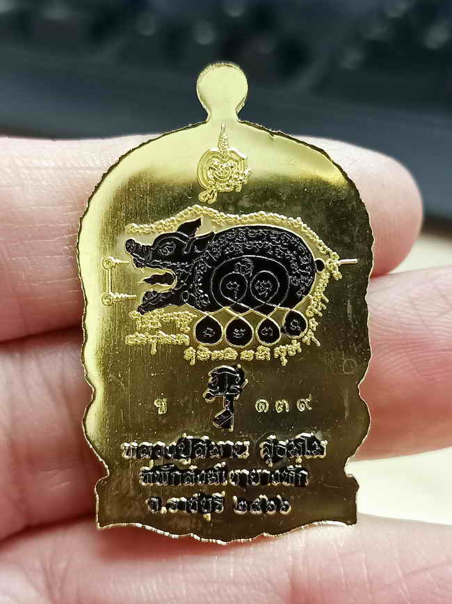 วัดใจ 100 เหรียญนั่งพานรับทรัพย์ หลวงปู่สมาน สำนักสงฆ์เขายางหัก ปากท่อ ราชบุรี 2566 ชุบทอง 2K หมายเลข 139 กล่องเดิม |