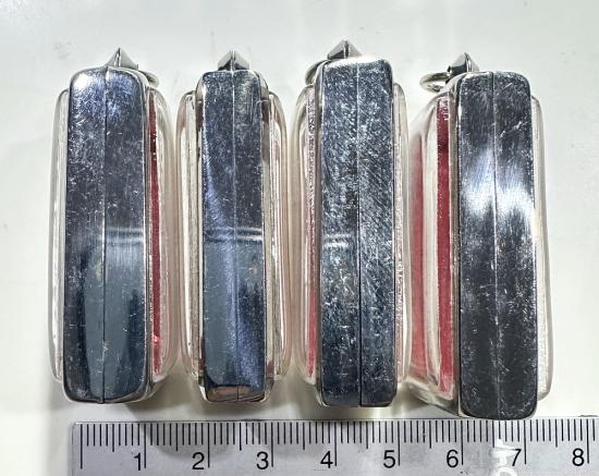 ตลับมือสองสแตนเลสทรงสี่เหลี่ยมใส่สมเด็จทั่วไปได้ 4 ใบแบบเปิดหน้า-หลังขนาด 4 x 3 ซม. |