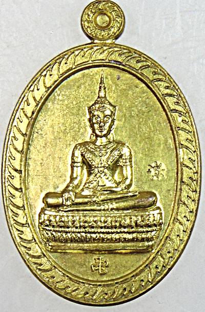 เหรียญพระพุทธนิมิตพิชิตมาร (เหรียญมหาจักรพรรดิ์) วัดหน้าพระเมรุ จ.อยุธยา ปี พ.ศ.2542 หลังยันต์มหาจักรพรรดิตราธิราช เนื้อทองฝาบาตร |