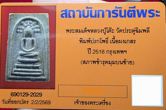 สมเด็จปกโพธิ์ หลวงปู่โต๊ะ มีบัตร เปิดที่ 100 |