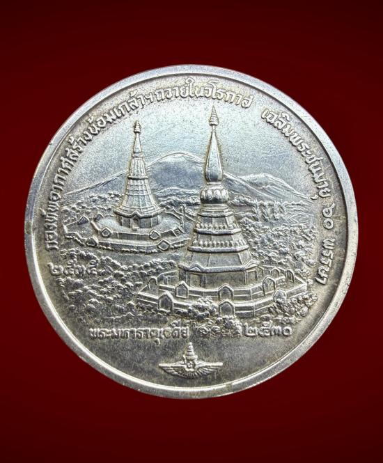 เหรียญในหลวง ร.9 คู่พระราชินี มหามงคล 60 พรรษา พ.ศ.2530 "เนื้อเงิน" ที่ระลึกจัดสร้างพระมหาธาตุเจดีย์นภเมทนีดล-นภพลภูมิสิริ กองทัพอากาศจัดสร้าง |