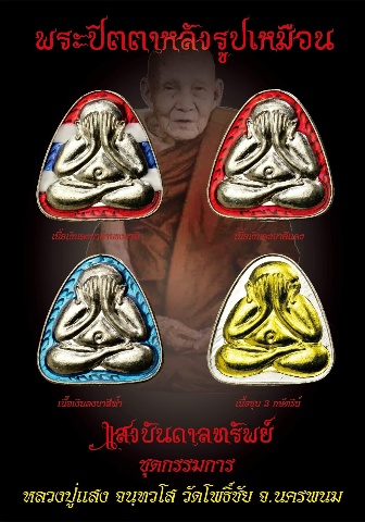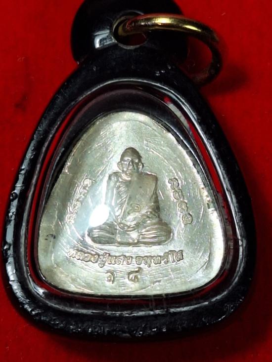((วัดใจ))แสงบันดาลทรัพย์ ปิดตาหลังรูปเหมือน หมายเลข 18 หลวงปู่แสง จนทวโส วัดโพธิ์ชัย จ.นครพนม ((เนื้อเงินหน้ากากทองคำ))