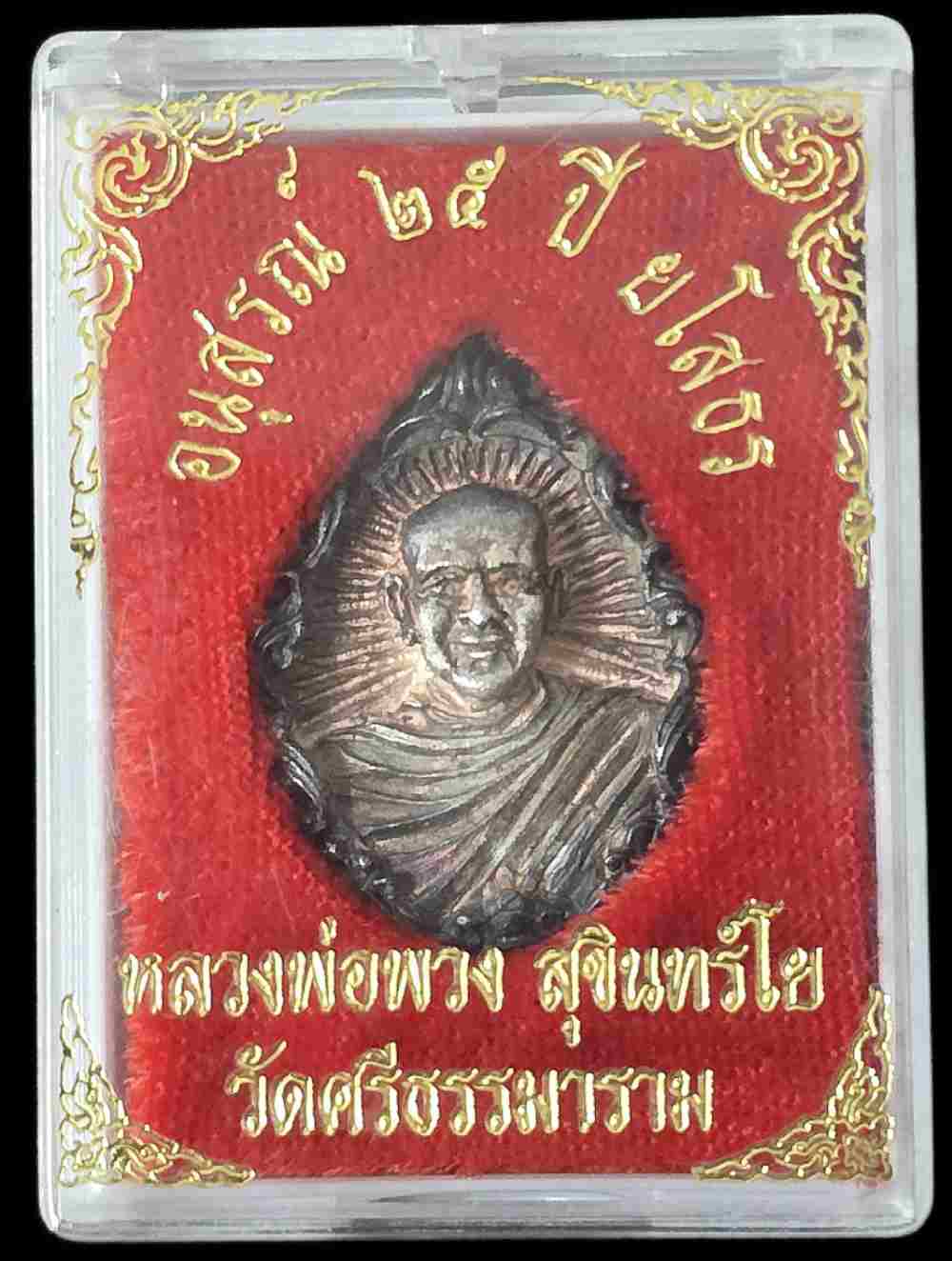 เหรียญหล่ออนุสรณ์ 25 ปี เนื้อเงิน พร้อมกล่องเดิม หลวงตาพวง วัดศรีธรรมมาราม ยโสธร ปี 2540 รับประกันพระแท้ตลอดชีพ |