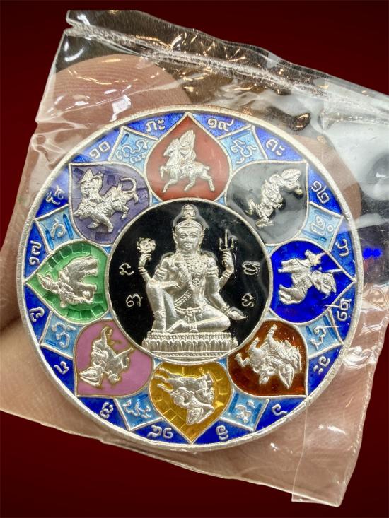 เหรียญองค์พ่อจตุคาม หลังปิดตาพังพกาฬ วัดพุทไธสวรรค์ รุ่นอุดมโภคทรัพย์ เนื้อเงินลงยาราชาวดี