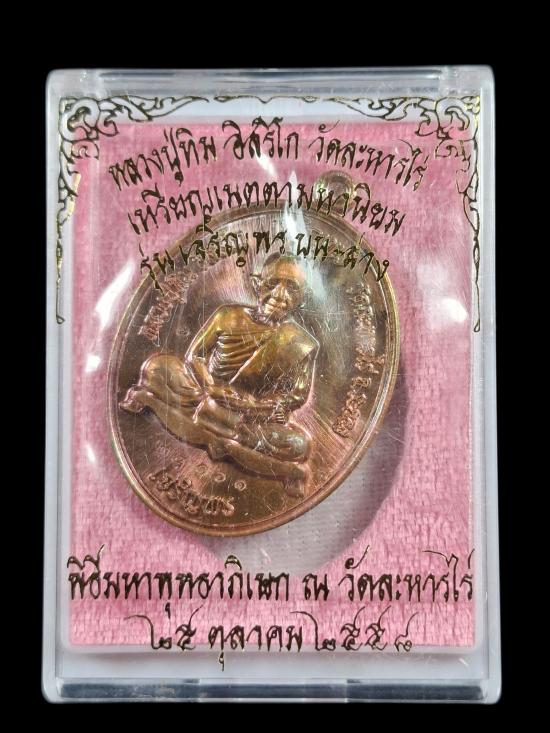 เหรียญเจริญพรหลวงปู่ทิม เนื้อทองแดงผิวรุ้ง "รุ่นเจริญพรบน ล่าง" พุทธาภิเษก ณ. (วัดละหารไร่)ปี 2558 |