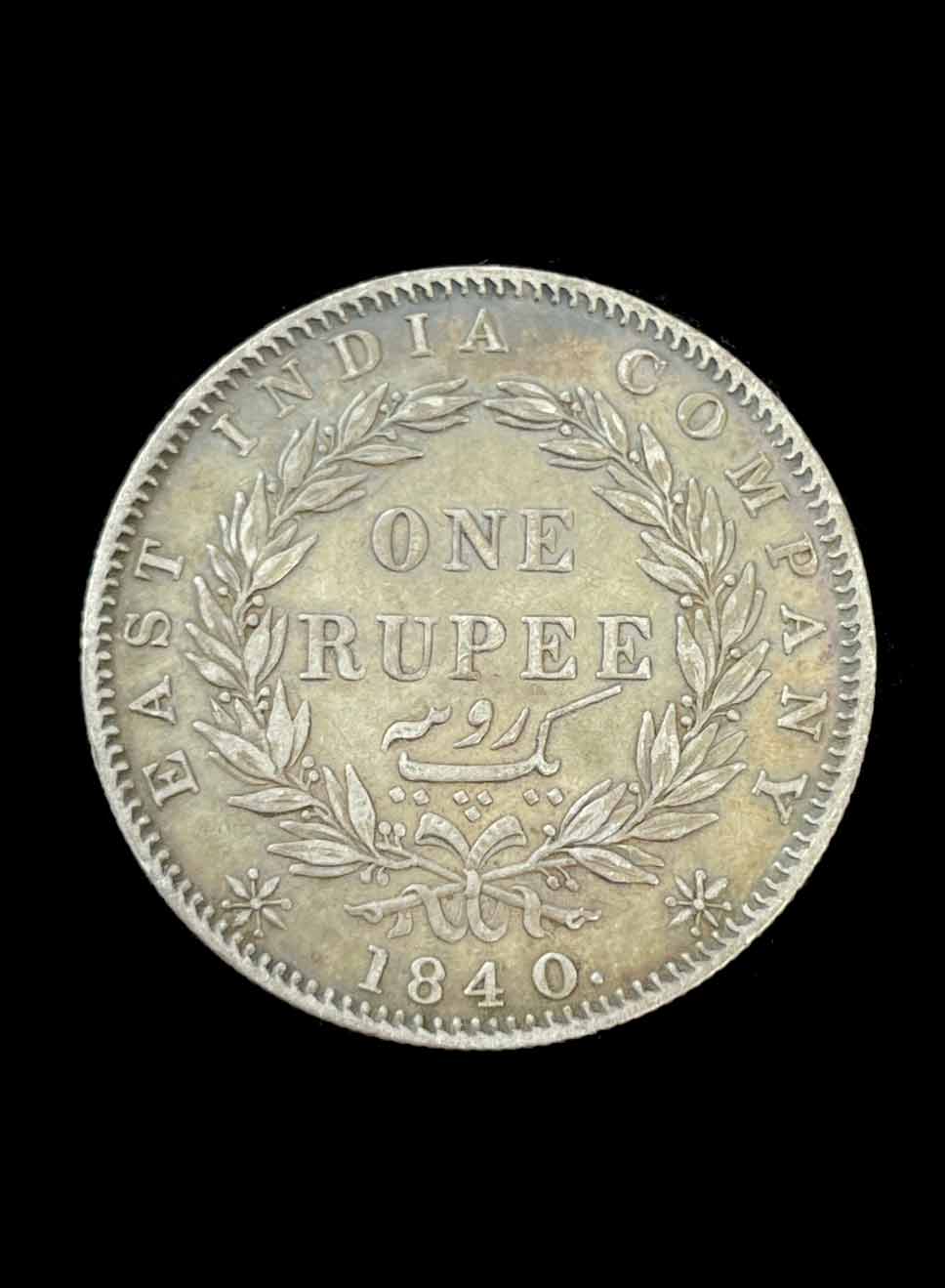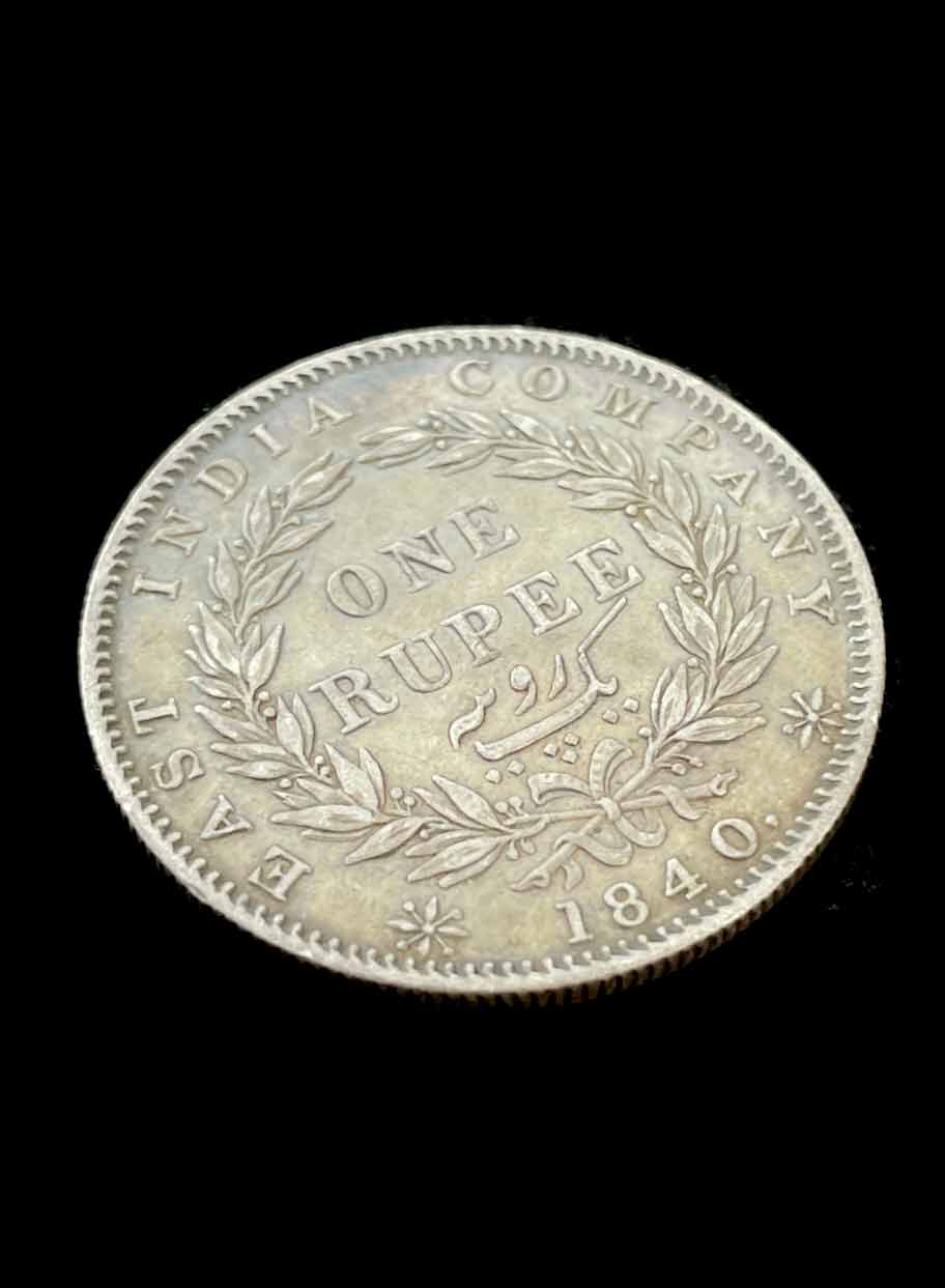 ด้านหลัง EAST INDIA COMPANY ONE RUPEE 1840 อายุเหรียญราว 186 ปี