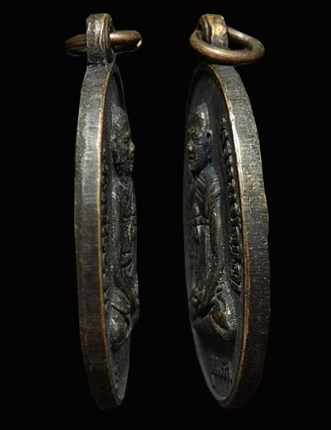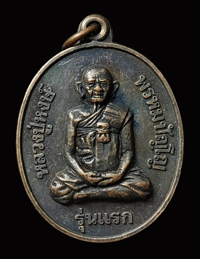 เหรียญหลวงปู่หงษ์ พรหมปัญโญ รุ่นแรก หลังพระแม่ธรณี เนื้อทองแดงรมดำ ปี2541 |