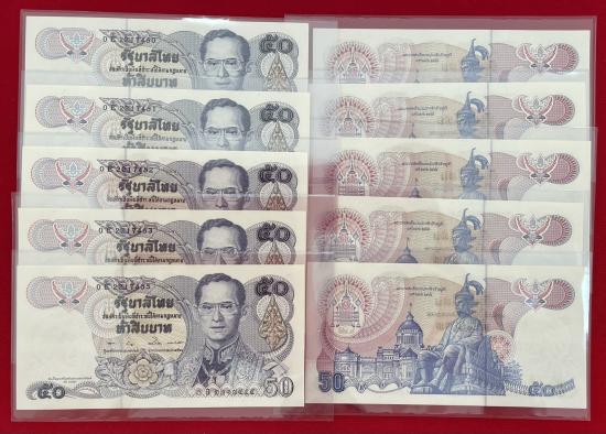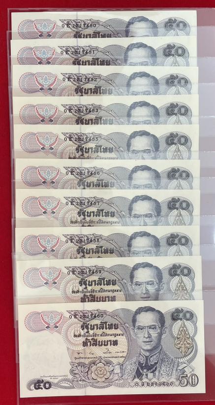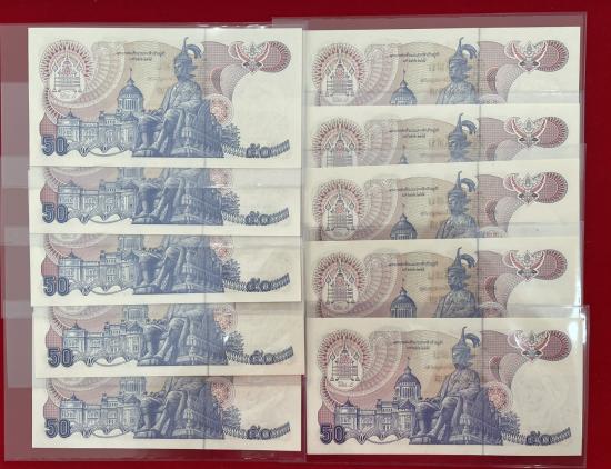 ธนบัตร 50 บาท รัชกาลที่ 9 แบบ 13 ลายน้ำสมเด็จย่า จำนวน 10 ใบ สภาพสวยตามรูป