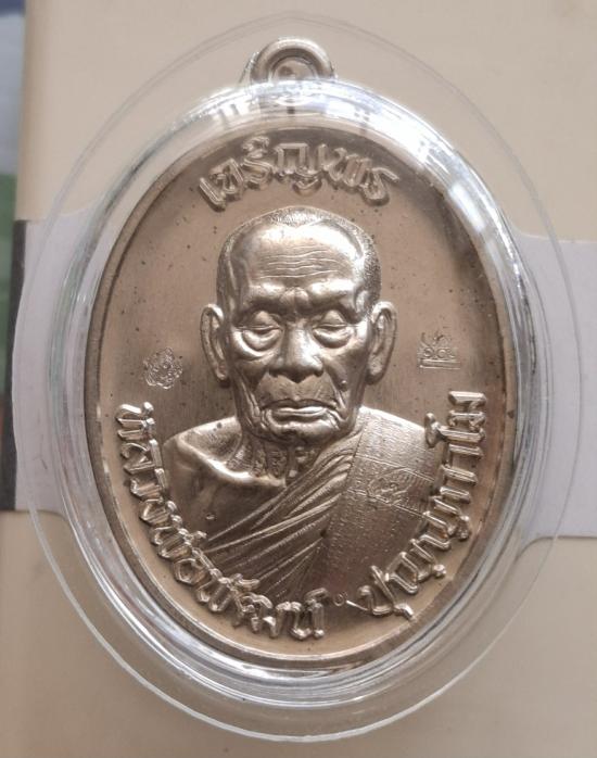 เหรียญเจริญพรบน 65 เนื้ออัลปาก้า-หลังแบบ เลขตัวเดียว ๔ สร้าง 100 เหรียญ หลวงพ่อพัฒน์ ปุญฺญกาโม เลี่ยมพลาสติก สวยๆกล่องเดิม |