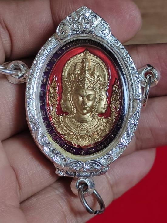 กรอบเงินผสม พรอมเหรียญพระพรหม หลวงพ่อพัฒน์ วัดห้วยด้วย เคาะเดียว สวยๆ |