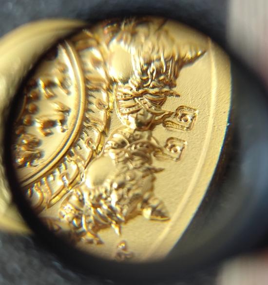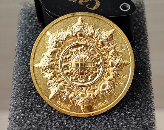 เหรียญจตุคามรามเทพ รุ่นดวงดี159 เนื้อชุบทองลงยาฟ้า No.๒๒ พร้อมกล่องเดิม ขนาดเหรียญ 2.8 cm. |