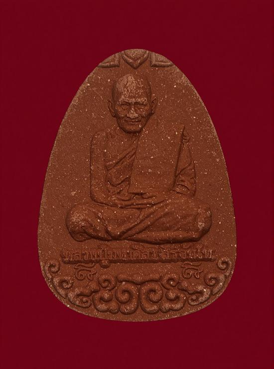 พระผงนั่งเมฆ หลวงปู่มหาศิลา สิริจันโท วัดโพธิ์ศรีสะอาด จังหวัดกาฬสินธุ์ เนื้อผงมวลสารสีแดง |