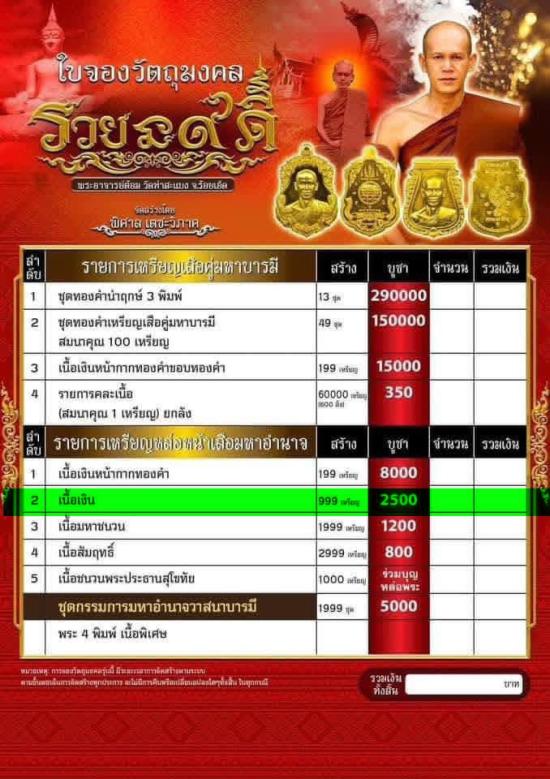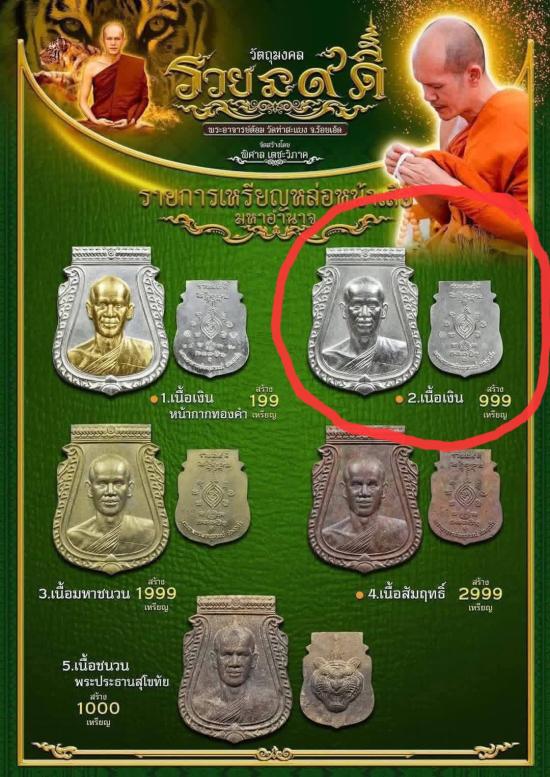 วัดใจ กำลังร้อนแรง พระอาจารย์ต้อม วัดท่าสะแบง จ.ร้อยเอ็ดเหรียญ หล่อหน้าเสือมหาอำนาจ เนื้อ เงิน สร้าง999 พิเศษจากราคาจอง 2,499 หมายเลข 805 เลขสวยๆ กล่องครบ