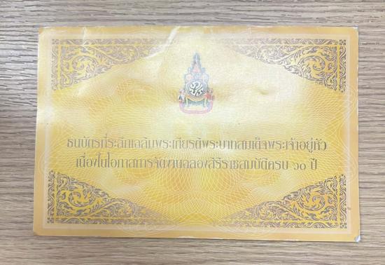 ธนบัตรที่ระลึกเฉลิมพระเกียรติ ในหลวงรัชกาลที่ 9 เนื่องในโอกาสฉลองสิริราชสมบัติครบ 60 ปี ชนิด 60 บาท |