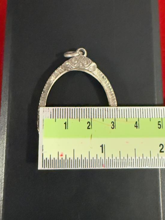 กรอบเงิน ใส่เหรียญหลวงพ่อแดงวัดเขาบันไดอิฐ รุ่น1-2-3 น้ำหนัก 5 กรัม สภาพใช้พอสวยครับ |