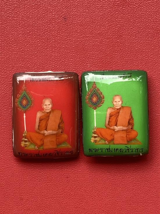 เคาะเดียวแดง หลวงปู่บุดดา รุ่น ล็อกเก็ตเลื่อนสมณศักดิ์ สีแดงกับสีเขียว หลังฝังตะกรุดเงินคู่ แผ่นรันเลขเงิน |