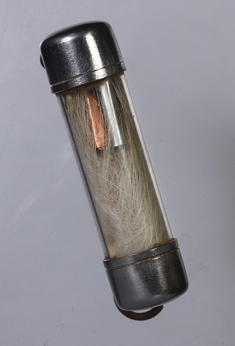 วัดใจ**เครื่องราง ตะกรุดหนังเสือ ยาว 2.นิ้ว ไม่ทราบที่....ตามสภาพครับ |