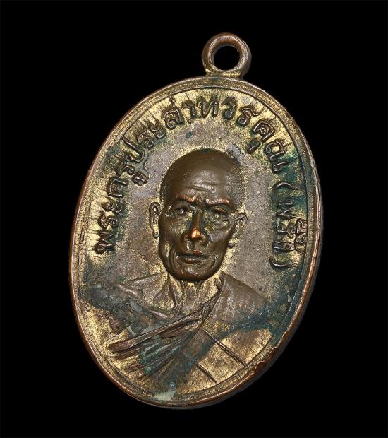 เหรียญรุ่น2 หลวงพ่อพริ้ง วัดโบสถ์โก่งธนู กะไหล่ทอง ลพบุรี ปี2507 |