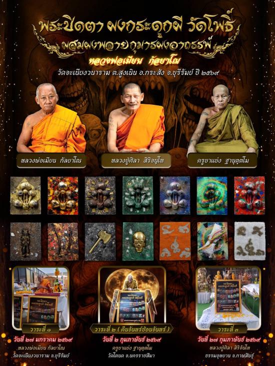 มา 5 ลุ้นซีนเดิม พระปิดตา ผงกระดูกผี วัดโพธิ์ ผสมผงพลายกุมารผงอาถรรพ์ หลวงพ่อเมียน กัลยาโณ วัดจะเนียงวนาราม ต.สูงเนิน อ.กระสัง จ.บุรีรัมย์ ปี ๒๕๖๙ |