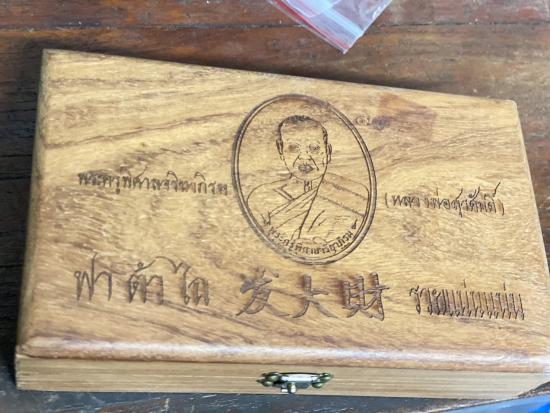 กล่องไม้ใส่ชุดทองคำ รุ่นฟาต้าไฉ่ รวยแน่นแน่น ปี2556 พระมหาสุรศักดิ์ วัดประดู่พระอารามหลวง |