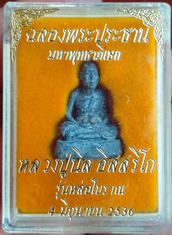 รูปหล่อโบราณเนื้อตะกั่ว หลวงปู่นิล อิสฺสริโก วัดครบุรี นครราชสีมา ปี 2536 มหาพุทธาภิเษก ฉลองพระประธาน สภาพสวย เดิม พร้อมกล่องเดิม