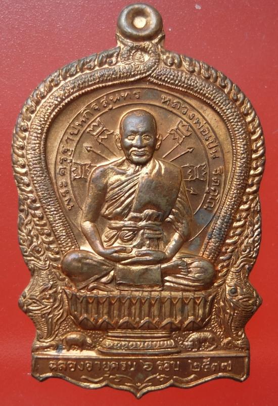 เหรียญนั่งพาน 6 รอบ หลวงพ่อเปิ่น วัดบางพระ ปี 2537 เนื้อทองแดง |