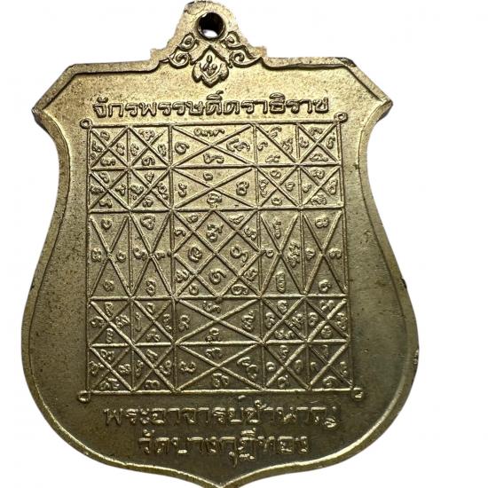 เหรียญอาร์ม หลังยันต์จักรพรรดิ์ตราธิราช หลวงพ่อชำนาญ ปี2544 |