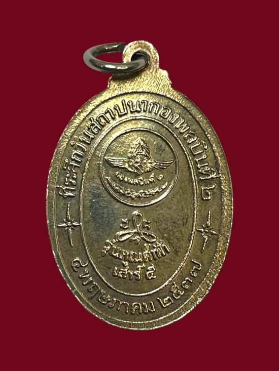 เหรียญหลวงพ่อคูณ วัดบ้านไร่ จ.นครราชสีมา รุ่นคูณค้ำฟ้า ปลุกเสกพิธีเสาร์ 5 ปีพ.ศ 2537 ที่ระลึกวันสถาปนากองพลบินที่ 2 |