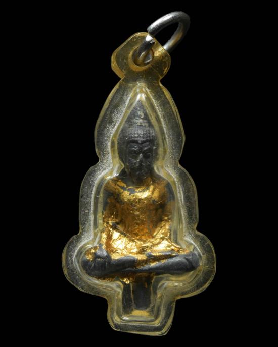 วัดใจ พระยอดธง เนื้อชินตะกั่ว เลี่ยมพลาสติกโบราณ |