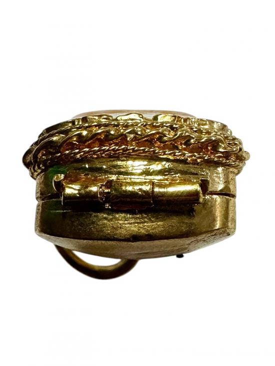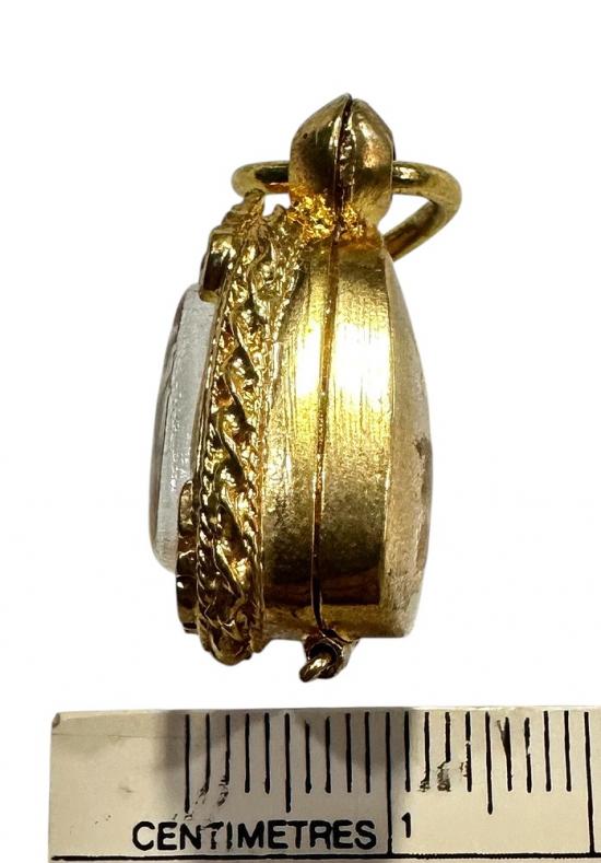 ตลับมือสองโลหะชุบทองหนาทรงสามเหลี่ยมใส่พระปิดตาจิ๋วได้ ขนาด 1.5 x 1.5 ซม. |
