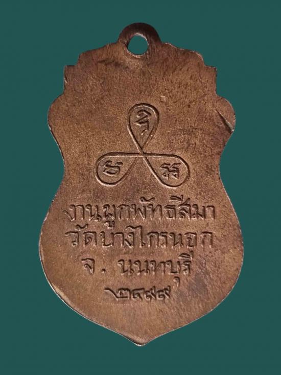 ((เคาะแรก)) เหรียญหลวงพ่อ วัดบางไกรนอก นนทบุรี ปี 2499 เนื้อทองแดงกะไหล่ทอง สภาพทำความสะอาดผิว ยังพอมีกะไหล่ทอง ตามซอกอยู่ครับ |
