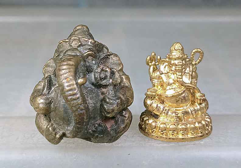 พระพิฆเนศหล่อเนื้อตะกั่ว หลวงพ่อเปา วัดสวนสำราญ สระบุรี + ลูกอมพระพิฆเนศไม่ทราบที่ + รูปหล่อพระพิฆเนศ ประทับบรรลังก์กระโหลก วัดนครหลวง อยุธยา รุ่นไตรมาส67 + เหรียญพร:พรหมสวรรค์มงคล หลังรัชกาลที่ 5 |