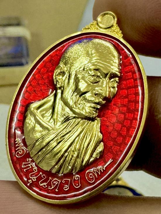 *** เคาะเดียวแดง*** เหรียญ หนุนดวง หลวงปู่มหาศิลา สิริจันโท เนื้อทองลำอู่ ชุบทอง 24 kลงยาแดง #1303 |