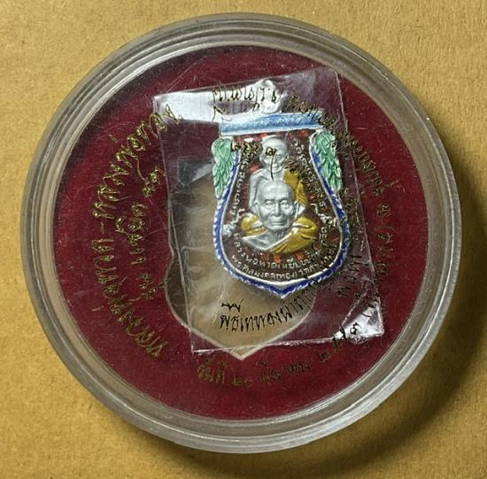 เหรียญพุทธซ้อนพิมพ์กรรมการเล็ก เนื้อเงินลงยา ลพ.ทวด รุ่น แซยิด ๙๓ อาจารย์ทอง วัดสำเภาเชย ปัตตานี สภาพสะสม สวยเดิมแท้ พร้อมกล่องเดิม