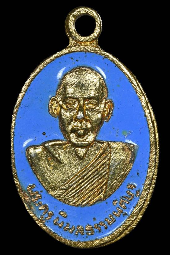 เหรียญหลวงพ่อขวัญ วัดบ้านไร่ เนื้อทองแดงกะไหล่ทองลงยาน้ำเงิน ปี2518 จ.พิจิตร |