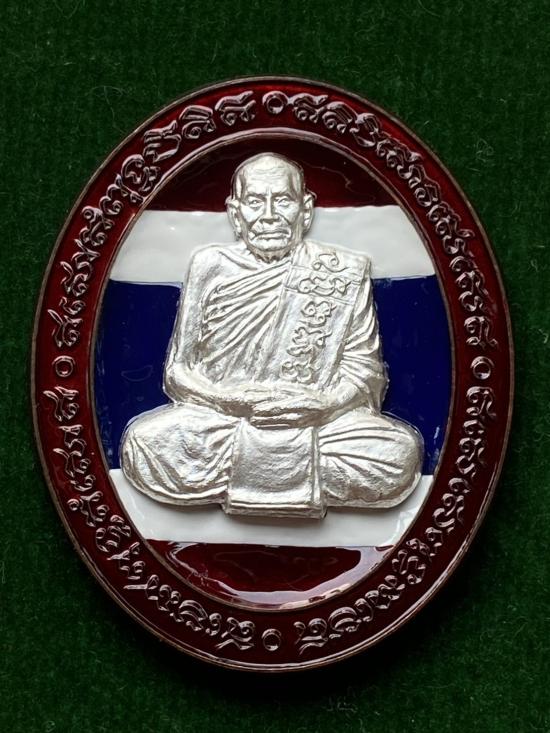 เคาะเดียวแดง หลวงปู่บุดดา รุ่น 5แชะ เนื้อนวะหน้ากากเงินหลังเรียบติดจีวรกับเกศา (กล่องแทน)