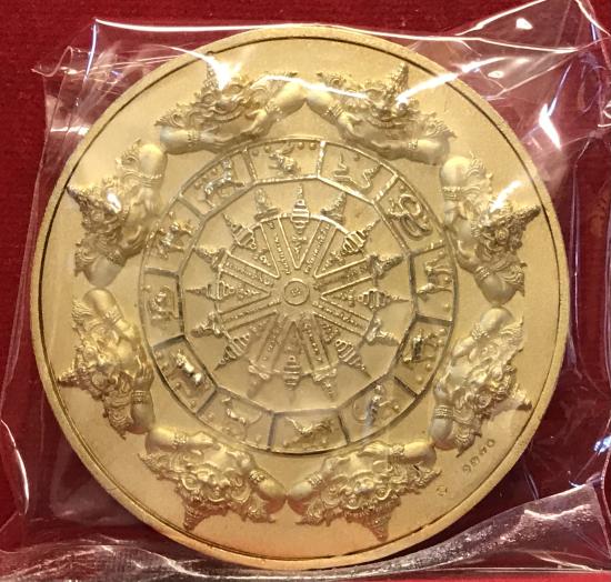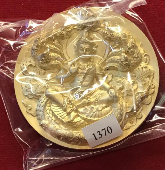 เหรียญบาตรน้ำมนต์เนื้อชุบทองจตุคามรามเทพ หลัง พระปิดตาพังพระกาฬ รุ่นอัครมหาเศรษฐี วัดพระมหาธาตุวรมหาวิหาร